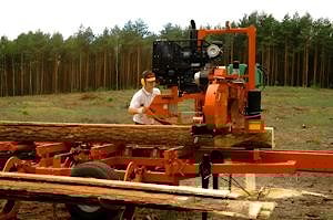 За свою более чем четверть вековую историю компания Wood-Mizer выпустила 45.000 ленточных станков, и, в основном, – модель LT40, конструкция которой и сегодня остается наиболее приближенной к первому прототипу, разработанному основателями фирмы Wood-Mizer инженерами Доном Ласковским и Дэниэлем Текульве в период 1978-1982 год. В некоторых странах, например, в Болгарии, доля пилорам ЛТ40 достигает 70% от всех машин Wood-Mizer. Вудмайзеристы считают, что ЛТ40 – это очень удачный пример соотношения функциональности и цены.Почему станок Wood-Mizer популярен в Болгарии – читайте в интервью представителя фирмы Калина Симеонова. Поскольку фирма-изготовитель выпускает серию LT40 много лет, все детали и узлы конструкции прошли многократные проверки и усовершенствования. В результате, станок Вудмайзер LT40 обладает повышенной надежностью и ремонтопригодностью. Спецификация серии LT40 Ленточнопильные станки Wood-Mizer собираются по модульному принципу. За счет этого в каждой серии оборудования можно подобрать спецификацию, наиболее подходящую для задач по распиловке, которые будет выполнять данный станок. Рассмотрим технические параметры модулей в серии ЛТ40. Длина распила. Выбирается станина из трех вариантов длины распила: 5000 мм, 6300 мм, 8400 мм. Кроме того, к станине можно присоединить удлинитель, что увеличит длину распила еще на 1800 мм, 3600 мм или 7200 мм.Главный двигатель. Для стационарного станка предлагаются варианты электрических двигателей мощностью 15 кВт или 18,5 кВт. В мобильной версии используются дизельные двигатели Kubota мощностью 33 л.с. или 42 л.с. или бензиновый двигатель Kohler 28 л.с. Сейчас появились распиловщики, которые оказывают услуги по лесопилению на мобильных станках Wood-Mizer с электродвигателем. В этом случае у клиентов должно быть электроподключение 380В, либо нужно приобретать дизель-генератор, который, например, применяется в войсковых частях. Пилящая голова. Механизированная подача пилящей головы – вверх/вниз и вперед/назад – двигает распиловочный механизм вперед с максимальной скоростью до 36 м/мин, и возвращает назад со скоростью до 48 м/мин. Электронная линейка SW10 входит в стандартную комплектацию станка: это устройство автоматически устанавливает пилящую голову в необходимое положение, чтобы получить доску заданной толщины. ![]() Удобно, что управление всеми функциями пилящей головы осуществляется с одного пульта. Расстояние между роликами пилами, которое также регулируется электромеханически, позволяет пилить доски шириной до 710 мм. Системы для загрузки бревна 1) Ручная загрузка. У станка Вуд-Майзер LT40 может быть ручная загрузка бревна. В этом случае в передней и тыльной части станины устанавливаются домкраты для компенсации конусности бревна. Загрузка осуществляется с помощью ручной лебедки. 2) Ручная помпа. Если к станку заказана ручная гидравлическая помпа, то в спецификацию включаются загрузочные лапы и рычаг для переворота, которые позволяют оператору в одиночку загружать и вращать бревна на станине. 3) Гидравлическая система загрузки. Базовая комплектация включает прижим, рычаг вращения бревна и два домкрата. Дополнительно можно заказать загрузочные лапы и 2-3 концевых прижима, которые необходимы для распила искривленных бревен. Если ведется распиловка длинного материала, то на станину с длиной распила 8400 мм монтируются 3 зажима и 3 домкрата. ![
