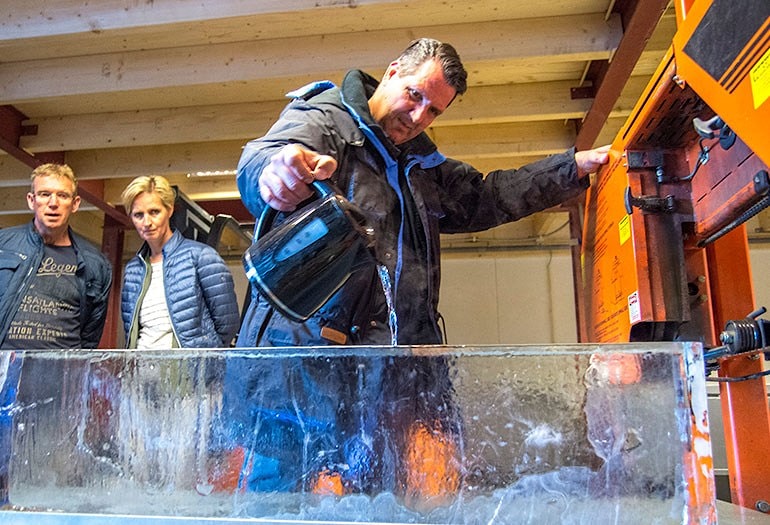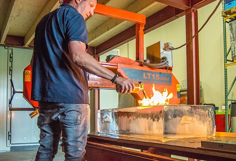 Компания ROCKS ICE из Нидерландов создает экстравагантные ледовые скульптуры и предоставляет ледяные блоки для престижных вечеринок и презентаций в клубах, ресторанах и отелях. Восхитить своих гостей мастерски изготовленными ледяными скульптурами, скорее всего, не самая первая идея, которая приходит в голову при планировании вечеринки, но голландская компания Rocks Ice увидела потрясающие перспективы в этом деле. Компания творчески использует лед и создает из него замысловатых резных лебедей или элегантную стойку бара, наполненную сухим льдом, который остается холодным весь вечер. Компания Rocks Ice началась с маленького ноу-хау и больших амбиций. «Клиенты, в основном, рассчитывают на быстрое исполнение своих заказов и наилучшее качество. Когда организуешь вечеринку, своевременность поставки - это самое важное», - говорит Даниэль Ван Тонгерен, владелец компании Rocks Ice. Он гарантирует, что кубики льда всегда кристально чистые и геометрически точные по форме. Ледяные блоки вырезаются специальной машиной от Clinebell, дистрибьютора промышленного оборудования для льда. С помощью этой машины можно одновременно делать два ледяных блока, что занимает около четырех дней. Чтобы распиливать ледяные блоки, в компании Rocks Ice используют станок Wood-Mizer LT15. Пилорама способна нарезать лед на плиты толщиной до 2-3 см или даже тоньше, до 1 см. «Это очень точная работа, - говорит Дэниел, - но Wood-Mizer отлично справляется с ней». «После приобретения станка Wood-Mizer мы сами научились пилить лед, - объясняет Даниэль, - а остальное - история. Пилорама очень проста в эксплуатации, и мы используем ее в относительно простых целях». В свои свободные дни Даниэль любит отправиться на мотоцикле в долгую поездку по деревням и окрестностям. «Езда на байке позволяет почувствовать природу, ее тишину и самодостаточность», - говорит Даниэль. Компания Rocks Ice размещается в ангаре, который построили Дэниель и его друзья-мотоциклисты, чтобы было где потусоваться в пятницу вечером, и с тех пор это место стало сердцем их моторного клуба. Чтобы узнать больше о The Rocks Ice company, посетите веб-сайт: https://therocks.nl/ Статьи на тему Голландия Если Вас заинтересовали указанные в статье продукты или услуги фирмы Wood-Mizer, Вы можете:
