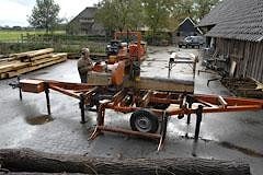 На фоне ностальгии и любви к чистому воздуху в Восточной Голландии процветает строительство небольших деревенских коттеджей.Однако милый аутентичный дизайн и умная конструкция, плюс хорошее качество и экономичная распиловка древесины тоже внесли свой вклад в рост компании «De Holle». Деревянные конструкции здесь выпускают на относительно небольшом станке с узкой ленточной пилой. Гарри Колкмэн, 47 лет, и его 36-летний компаньон Джоз Шурлеммер делают бизнес на строительстве сараев, амбаров, навесов, гаражей, дач и конюшен. Они живут в городке Хитен недалеко от Девентера. Для Гарри это, фактически, уже вторая профессия, и она приносит ему огромное удовольствие, ведь он работает на свой карман и особо не напрягается. Мало того, сам по себе бизнес довольно выгодный, учитывая популярность деревянных сооружений, которые он возводит, а также тот факт, что он сам делает пиломатериалы из древесины, которую закупает. Брус 25х25см, 10х15см и 20х2.5см он выпиливает из бревен длиной 6-8.5м весом до 1700 кг, и при этом у него нет затрат на субподрядчиков. Пилорама, расположенная по соседству, все равно не смогла бы обеспечить его пиломатериалом разного сечения в небольших количествах, ведь ее рентабельность зависит от крупных заказов.Он покупает древесину примерно по 120 евро за кубометр, и при выходе готовой продукции от 40 до 50% продает готовые доски из дуба по цене около 600 евро за куб. Прежде он работал оператором на молочной ферме, однако этот бизнес испытывал большие трудности, и владельцы фермы вынуждены были выслать рабочим уведомление о закрытии предприятия. Поскольку Гарри всегда интересовался древесиной, он подумывал для начала купить небольшой подержанный станок с ручной загрузкой бревна. Он уж было совсем согласился на эту покупку, как вдруг владелец станка передумал продавать. И к лучшему. Гарри решил рискнуть и приобрел новый, относительно недорогой станок Wood-Mizer с бензиновым двигателем за 25.000 евро, чтобы начать распиловочный сервис, который он назвал «Мобильная Лесопилка Гарр и Колкмэна». Кстати, он все еще использует эту торговую марку, когда распиливает древесину заказчиков, что составляет около 20% его трудозатрат по времени или 15% дохода.Он обнаружил, что 1,8 тонный станок имеет ошеломляющее преимущество по сравнению с той бэушной машиной, которую ему так и не удалось купить: Wood-Mizer можно буксировать и по шоссе, и по лесным дорогам, добираясь до складированных бревен заказчика в самой лесной глуши. Это значит, что его клиенты могут вырубить даже несколько деревьев (например, больных или поврежденных), что для обычной пилорамы, где бизнес строится на масштабной распиловке, было бы невыгодно. Кроме того, станок Wood-Mizer, прикрепленный к его Volkswagen Transporter T5 оставляет минимальные повреждения грунта на лесных просеках и полях. Ему нравится простота управления станком и другие особенности этой технологии. В частности, тонкий пропил дает больше полезных пиломатериалов и меньше опилок по сравнению с циркулярной пилой и ее 6-9мм пропилом.В первый год он распилил на заказ около 400 кубометров древесины, заняв доселе пустующую рыночную нишу в Восточных Нидерландах. Местные клиенты живут на землях, принадлежащих голландской короне, и это, в основном, заповедные территории. Заказы поступали от фермеров, владельцев усадеб, и частников, которым нужны доски для 