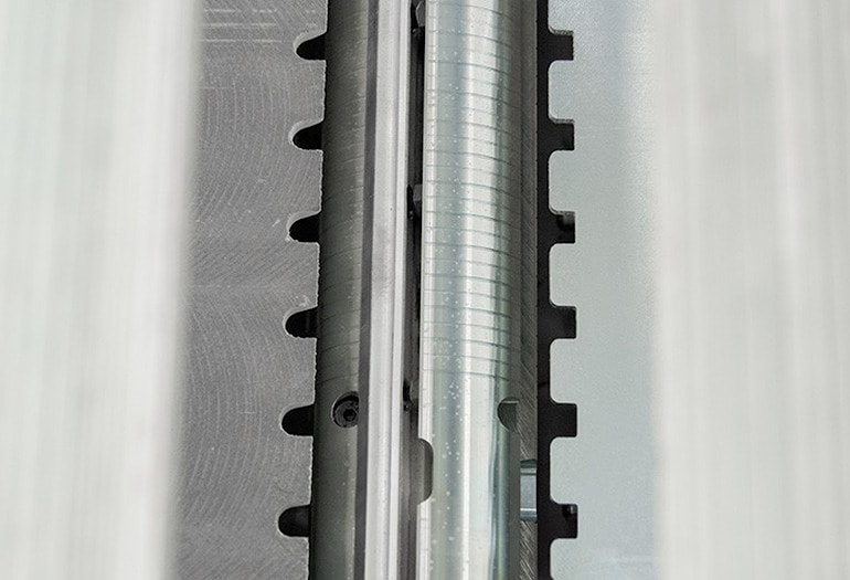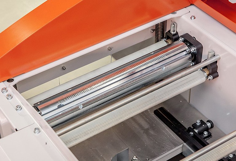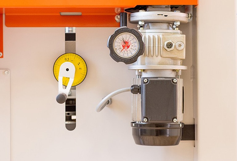 Высота ножей регулируется с помощью регулировочных колец и втулок. Wood-Mizer предлагает широкий ассортимент строгальных и формовочных ножей, изготовленных из стали HM (с твердосплавными напайками) и стали HSS. Рекомендуется использовать ножи HM для фанеры, HDF, MDF и других деревянных изделий. Ножи HSS предназначены для строгания и фрезерования древесины хвойных и твердых пород. Четырехсторонние строгальные станки имеют в комплектации по два строгальных ножа из быстрорежущей HSS стали для каждой ножевой головки. Ножи для профилирования нестандартной формы можно заказать в представительствах Wood-Mizer. Ролики подачи Несколько роликов подачи прижимают заготовку и перемещают ее через режущий механизм станка. Даже если доска слегка изогнута, ролики подачи будут удерживать ее ровно, так что полученный профиль будет регулярным от края до края. Первые четыре ролика изготовлены из рифленой стали, а последний ролик (или в случае станка МР365 - последние 3 ролика) имеет полиуретановое покрытие, чтобы не повредить готовый профиль. Стальные ролики можно по желанию заменить на подающие ролики с полиуретановым покрытием, если вы работаете с более дорогими породами дерева.   Переменная скорость подачи Система подачи с переменной скоростью приводится в действие отдельным двигателем.   Планетарный редуктор обеспечивает эффективную передачу энергии на подающие ролики. Коробка передач оснащена смотровым окном для контроля уровня масла, что упрощает обслуживание. Скорости подачи: