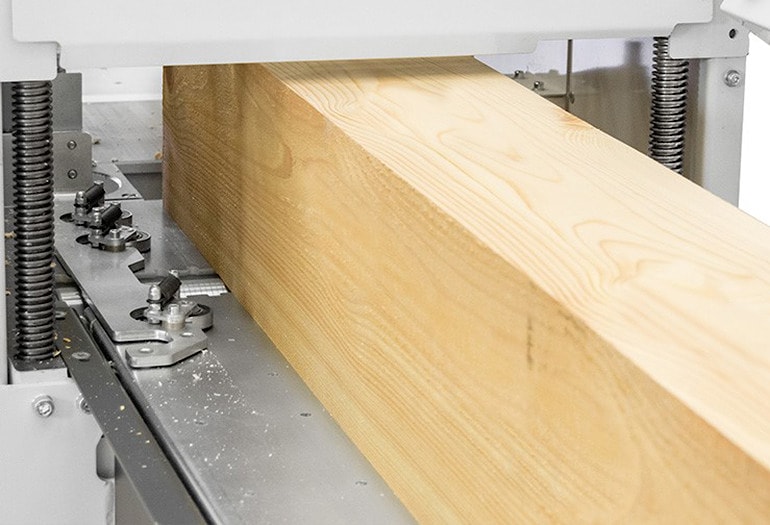 | Обзор четырехсторонних строгально-фрезерных станков Wood-Mizer10.12.2020  Wood-Mizer выпускает серию компактных универсальных 4-сторонних строгально-фрезерных станков. Эта статья поможет вам лучше понять разницу между станками данного модельного ряда. Самыми компактными и недорогими четырехсторонними станками Wood-Mizer являются MP260ECO и MP260PRO. MP260ECO – это базовый четырехсторонний строгальный станок, по сравнению с которым более продвинутая версия MP260PRO имеет три существенных отличия в конструкции: 1. Большое смотровое окошко для удобного наблюдения за процессом строжки. 2. Регулируемая скорость подачи от 2 до 12 м / мин помогает повысить эффективность производства и улучшить качество обработки поверхности при работе с большими поверхностями из твердых пород дерева. 3. Верхний горизонтальный нож приводится в движение более мощным двигателем мощностью 4 кВт, что позволяет добиться более гладкой обработки на более высоких скоростях подачи. Для увеличения производительности и ускорения строгания и фрезерования материала доступны две модели 4-сторонних строгальных станков большего размера и большей производительности - MP360 и MP365.   MP360 имеет 3 основных отличия в конструкции по сравнению с MP260: 1. Более высокая пропускная способность. 2. Размеры обрабатываемой заготовки больше; более мощный и универсальный станок. 3. Настройка станка осуществляется проще и быстрее. MP365 - это 4-сторонний строгально-фрезерный станок с 5-ю ножевыми головками, каждая из которых приводится в движение отдельным двигателем. Уникальная конструкция позволяет использовать дополнительные инструменты для вторичной обработки на 5-м шпинделе. За счет этого можно увеличить скорость подачи и использовать режущие инструменты, требующие 3000, 6000, 9000 или 14000 об / мин, чтобы создавать эксклюзивные молдинги за один проход.   Легкая замена ножей В строгально-фрезерных станках Wood-Mizer легко заменять ножи в ножевых головках. В зависимости от количества ножей изменение профиля занимает от 10 до 20 минут. Для этого открывается верхняя крышка и получается доступ ко всем четырем ножевым головкам.